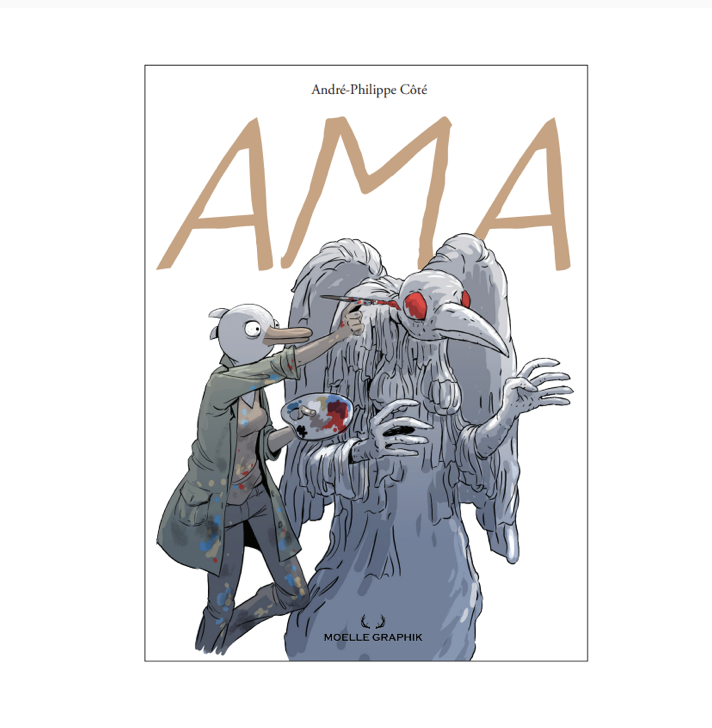 Les éditions Moelle Graphik feront paraître, en avril prochain, AMA, la nouvelle offrande d’André-Philippe Côté. Roman graphique tout en nuances, AMA se déroule dans le Québec des années 30, alors qu’une jeune artiste métisse originaire de Tadoussac, d’une grande originalité et à la personnalité forte, tente de se frayer un chemin dans le monde de l’art. Ama rencontrera plusieurs fois l’amour et évoluera de passions en déceptions, tout en développant une grande maturité artistique. Chemin faisant, elle sera trompée par les hommes qui détiennent le pouvoir et devra se colletailler avec l’alcoolisme, l’incompréhension, l’injustice et la maladie mentale.